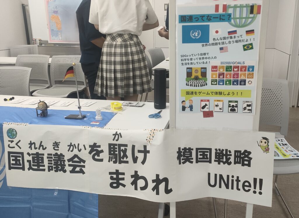 「国旗当てクイズ」「UNite!」「模擬国連体験会」の3つを企画し、2日間展開しました。