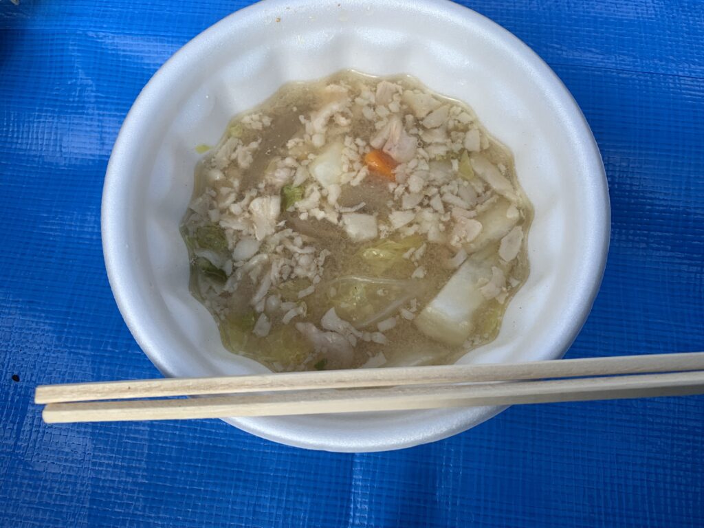 (肌寒い日に食べる熱々の豚汁は、美味しかったです!)