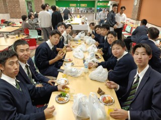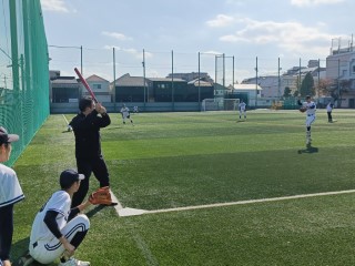 1・2年生と監督は練習試合で遠征なので、「3年生チーム」 VS 「OB+顧問チーム」でソフトボール大会です。試合後は地下食堂で、野球部近況や3年生の大会報告とあいさつ、出席OBの近況報告や思い出話そして現役生へのエールなどが披露され、終始和やかなムードの中OB会はお開きとなりました。