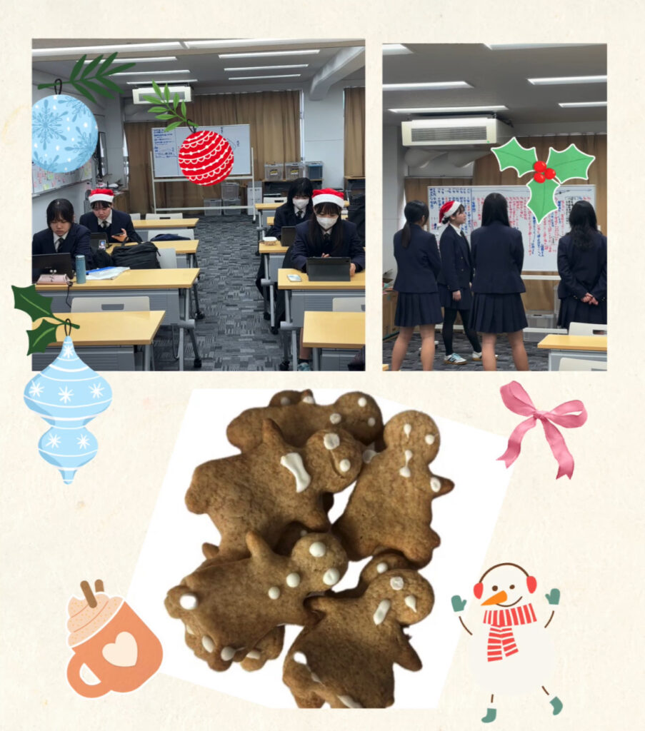 今は、2月の”文学模擬裁判”の大会に向けてああでもないこうでもないと議論中です。クリスマス返上で活動してました(👇は、せめてクリスマスの雰囲気を出そうとサンタ帽を着用する3年生🎅🎅笑&2年のIさんが焼いてきてくれたジンジャークッキーです😋🎵)