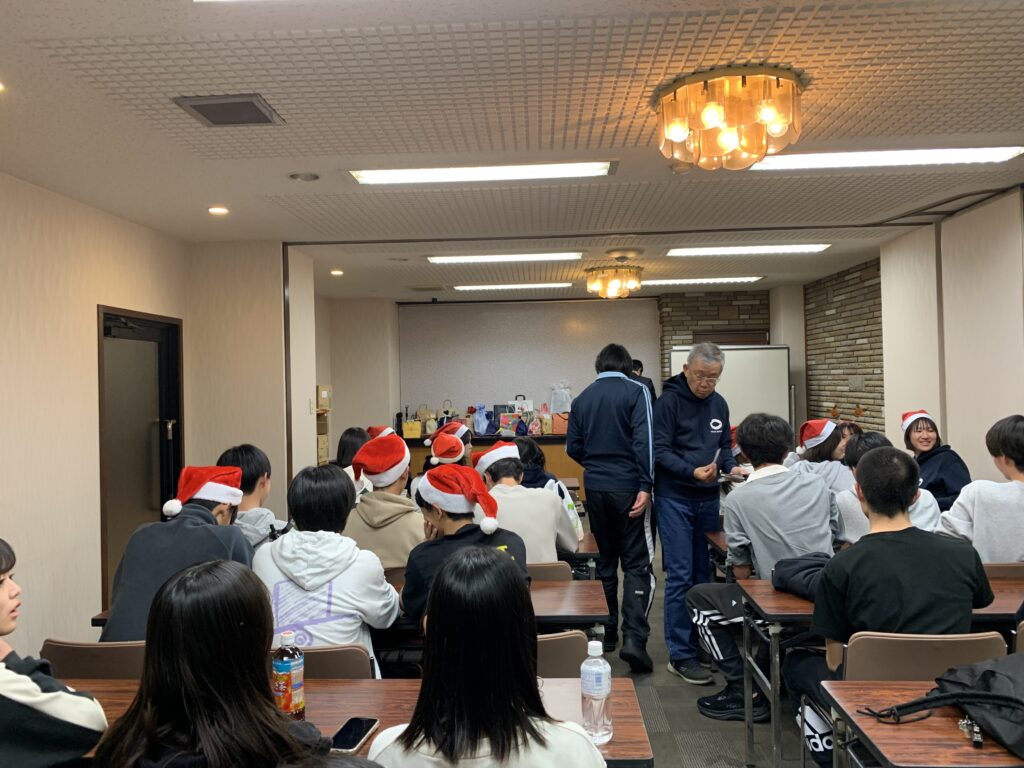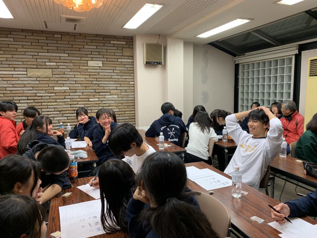 夜は、プレゼント交換会やローイング競技に関するクイズを通して、部員同士の絆・競技への知識を深めました。