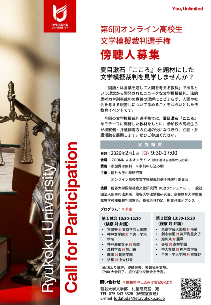 2月1日(日)、オンライン高校生文学模擬裁判選手権が開催され、私達も出場しました。