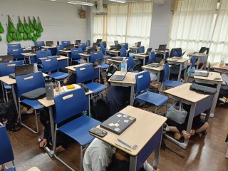 生徒は各教室で、防災担当教諭が配信するガイドに従って訓練を行いました。