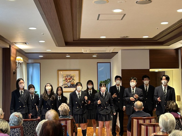合唱部は11月8日に、老人ホームのアリア上井草様とグランダ西荻窪様にてコンサートを開催しました。今回の曲目は「心の瞳」「足跡」「エスペランサ」などで、会場に集まられた大勢の皆様から1曲歌い終わるごとに温かい拍手をいただきました。「また来てくださいね」との嬉しいお言葉もかけていただきましたので、次の機会には益々充実したプログラムでお楽しみいただけるよう、新たなレパートリーを開拓しつつ、これからも練習に励みたいと思います。